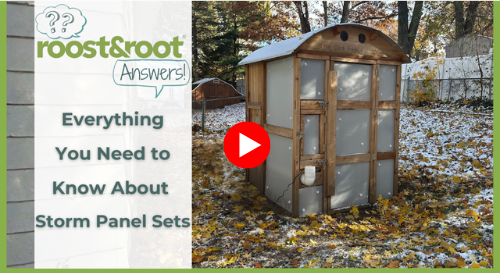 - Check for drafts — ventilation is key, but make sure cold winds stay out. To help with the harsh winds or sideways rain/snow you can purchase our Storm Panel Sets designed to seamlessly integrate with your coop.