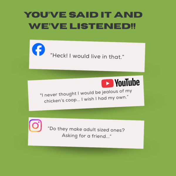 Order your coop by December 10th for arrival by Christmas Day! Don’t want it just yet? No problem! We can delay shipping for whatever your desired arrival is, just let us know. Give your loved ones (your chickens) the gift of a comfy new home this Christmas!